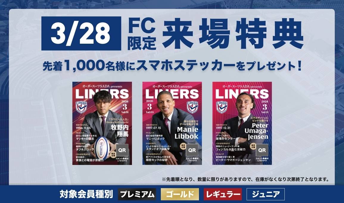 【LINERS FANCLUB】3/28(土)ファンクラブ来場特典のお知らせ