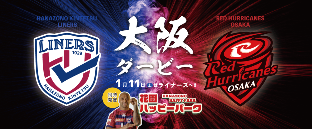 日頃は花園近鉄ライナーズへご声援を賜り誠にありがとうございます。「レッドハリケーンズ大阪戦」のご案内をいたします。