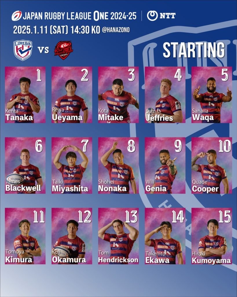 【日時】2025年1月11日(土)14:30 K.O. vsレッドハリケーンズ大阪【場所】東大阪市花園ラグビー場 (大阪府東大阪市松原南1-1-1)