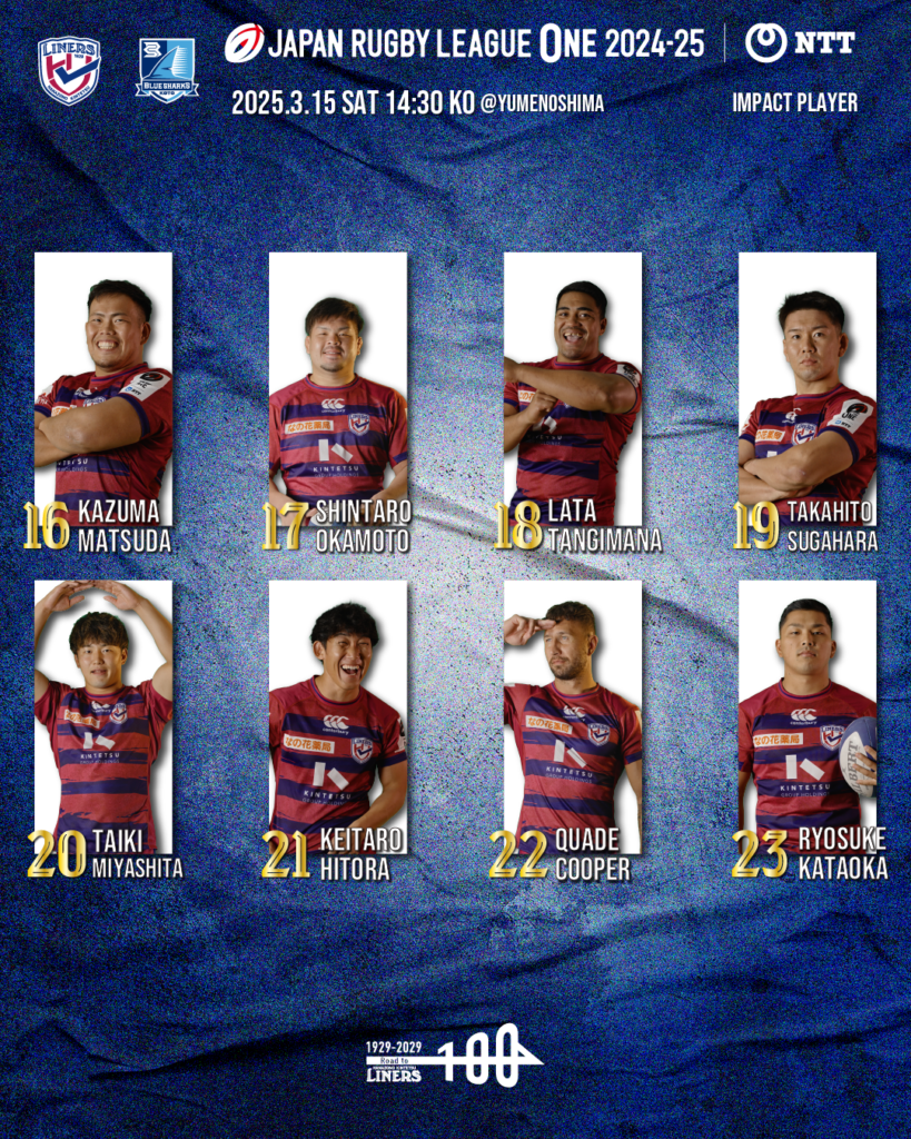 日頃は花園近鉄ライナーズへご声援を賜り誠にありがとうございます。NTTジャパンラグビー リーグワン2024-25 Div.2第8節「清水建設江東ブルーシャークス戦」のご案内をいたします。
