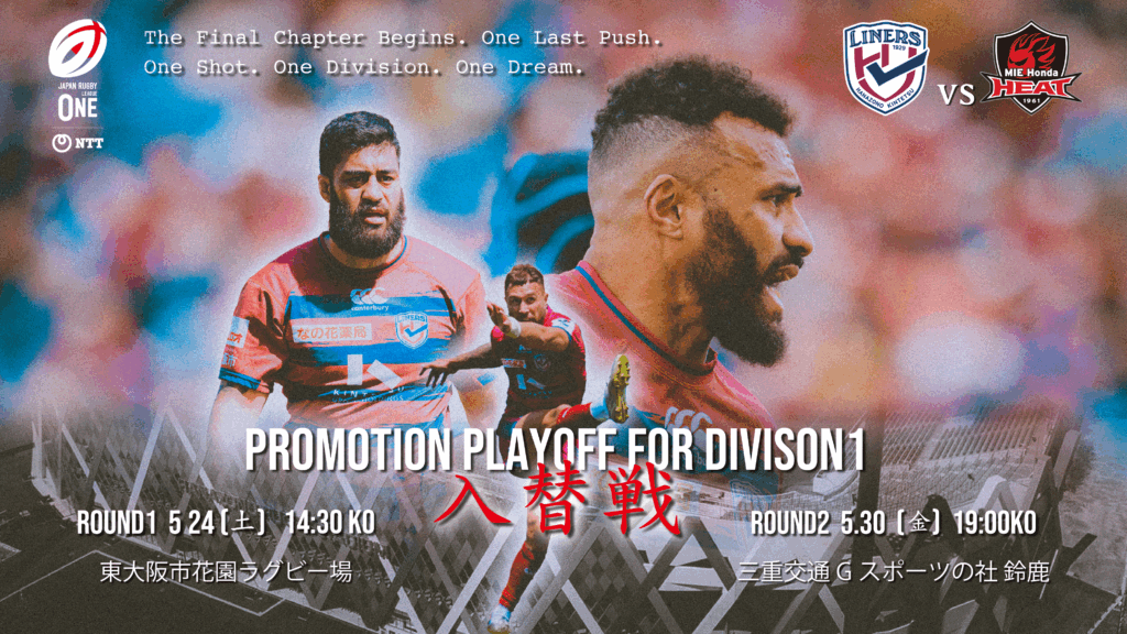 日頃は花園近鉄ライナーズへご声援を賜り誠にありがとうございます。5月24日(土)に、東大阪市花園ラグビー場で開催のNTTジャパンラグビー リーグワン2024-25 D1/D2 入替戦 第1戦vs三重ホンダヒート戦において、東大阪市民3000名様を無料招待いたします。みなさまの熱い応援が、ライナーズの大きな力となります。ぜひ会場にお越しいただき、ご声援をよろしくお願いいたします。