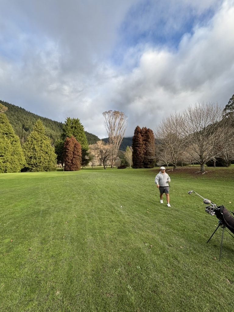 そして日曜日のオフには、ホームステイ先の兄弟たちとゴルフに行きました。ゴルフの腕前はまだまだですが、日本とは違い、広大な自然の中に広がるコースでプレーするのは格別でした。曇り空ではありましたが、夕方には美しい夕陽の中でゴルフを楽しむことができ、心も体もリフレッシュできました。