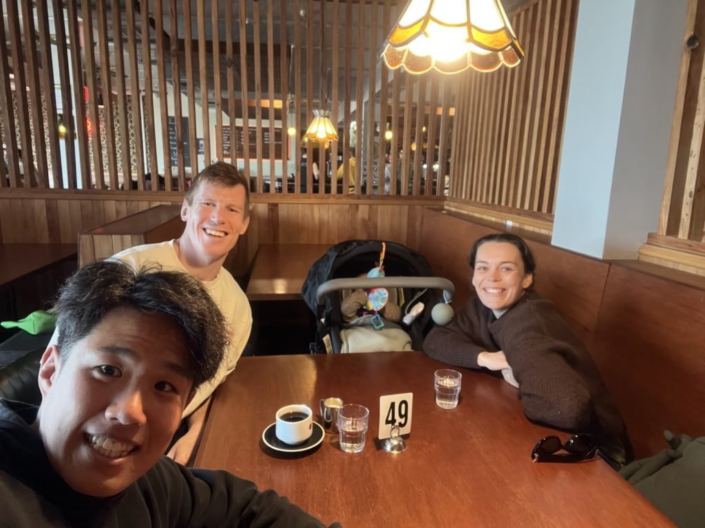 ニュージーランド最後の日曜日は、ウェリントンに昨年まで一緒にプレーしていたブラッキーに会いに行きました。空港まで迎えに来てくれて、ランチに行ったり、ブラッキーの家にお邪魔したり、久しぶりの再会が本当に嬉しかったです。彼のご家族も元気そうで安心しました。