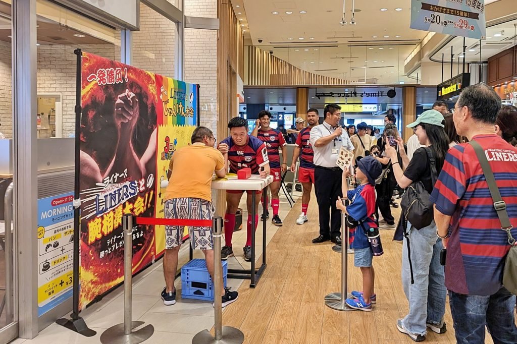 日頃は花園近鉄ライナーズへご声援を賜り誠にありがとうございます。2025年9月20日(土)、大和西大寺駅構内・Time’s Place西大寺にて開催される「周年祭」にて、腕相撲対決やじゃんけん大会、缶バッチ作り体験を行います。ライナーズの選手やライナマンも登場しますので、ぜひご参加ください。