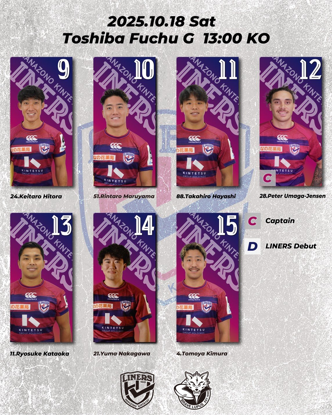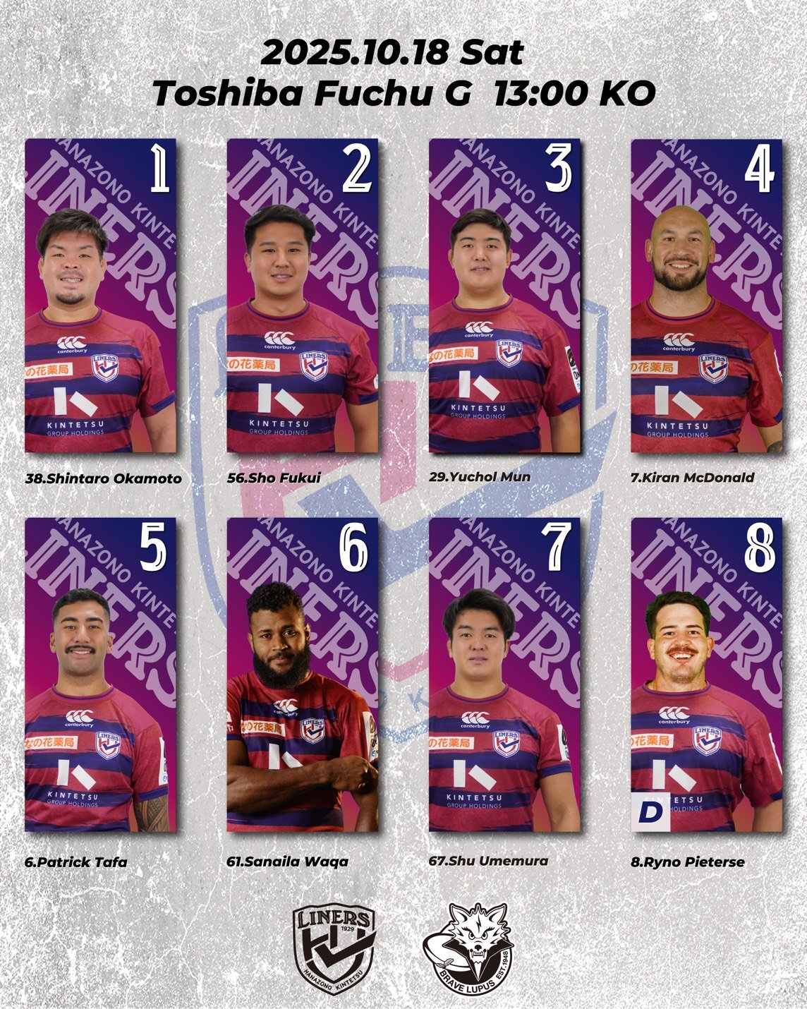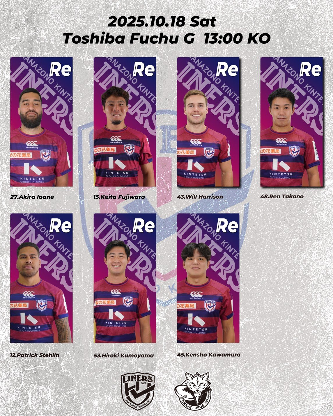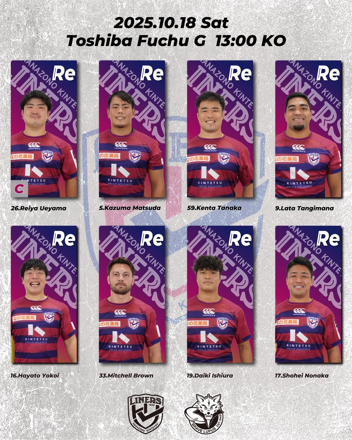 【日時】2025年10月18日(土)13:00 K.O. vs東芝ブレイブルーパス東京【場所】東芝府中グラウンド(東京都府中市東芝町1)