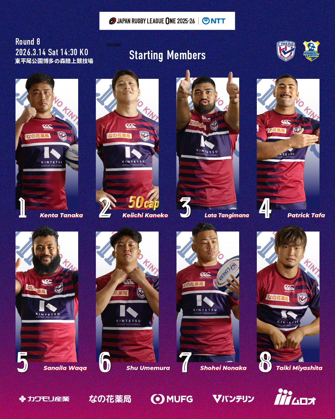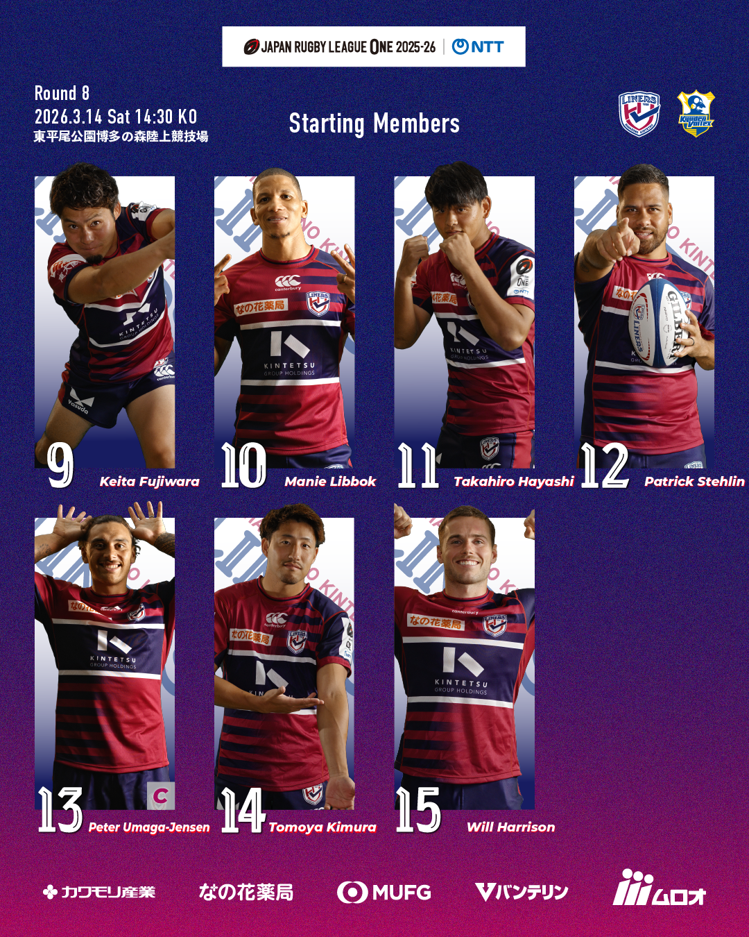 日頃は花園近鉄ライナーズへご声援を賜り誠にありがとうございます。NTTジャパンラグビー リーグワン2025-26 Div.2第8節 九州電力キューデンヴォルテクス戦のご案内をいたします。