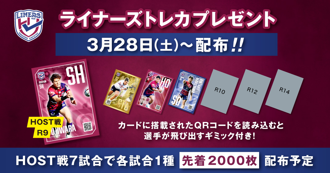 花園ラグビー場入場口にて、ライナーズトレカを先着2,000名様にプレゼント