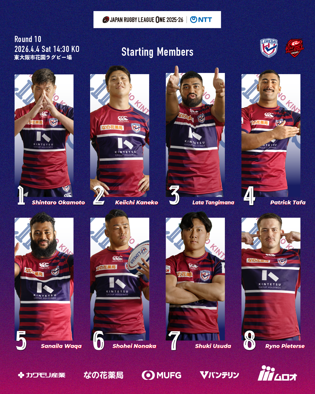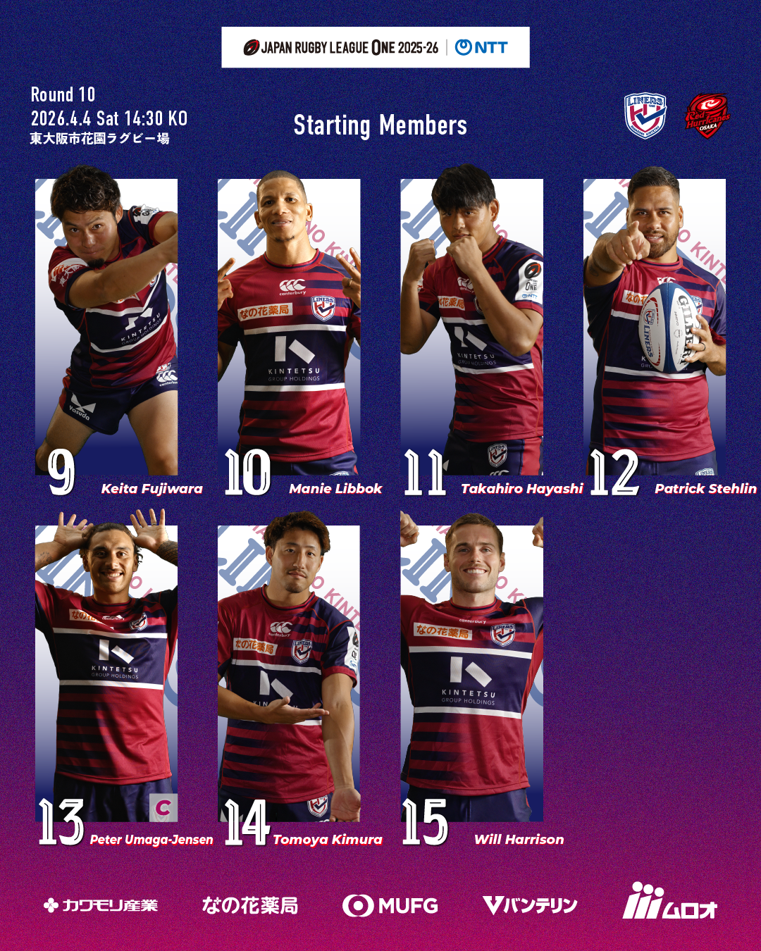 【4/4レッドハリケーンズ大阪戦】メンバーおよび試合詳細のご案内