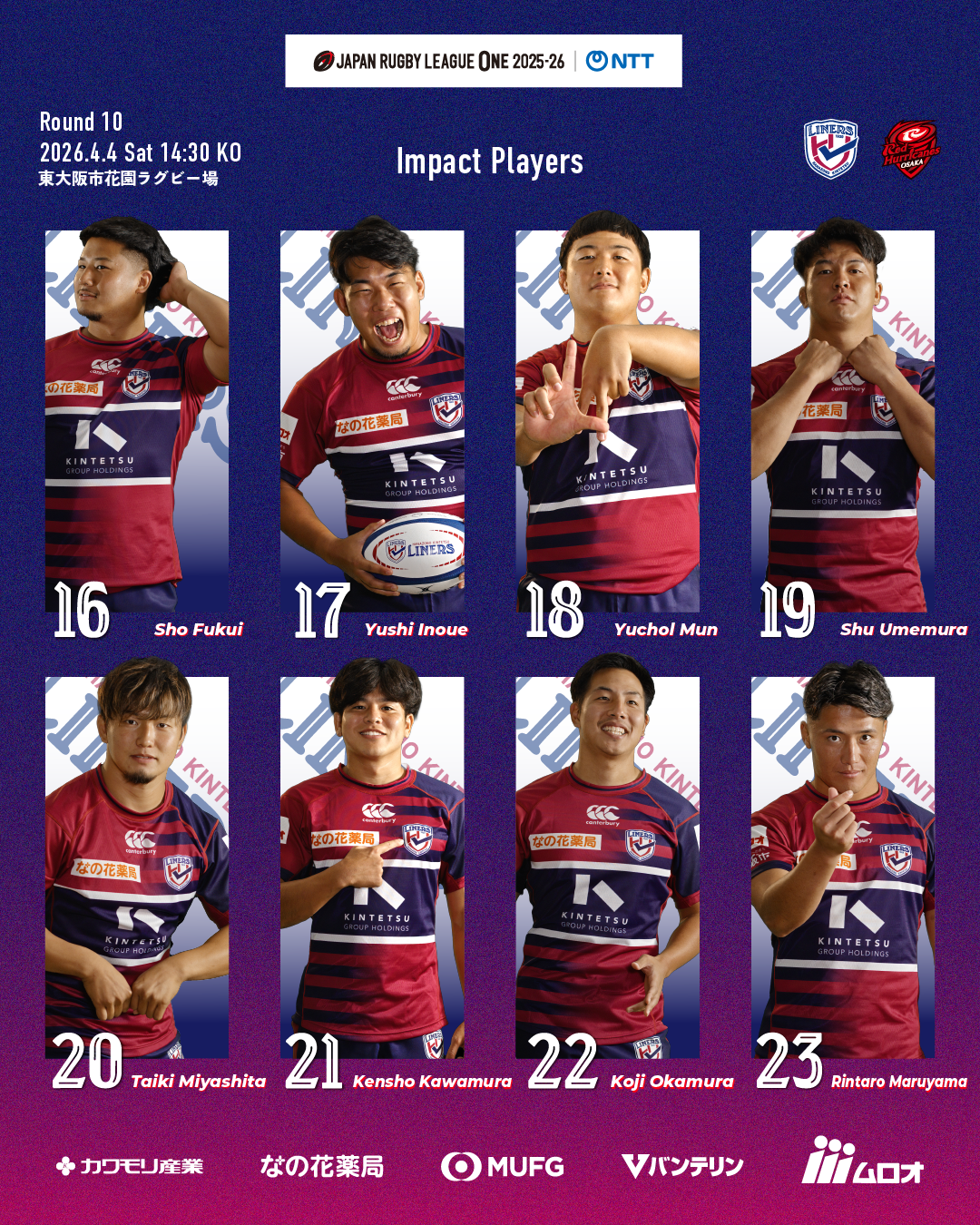 日頃は花園近鉄ライナーズへご声援を賜り誠にありがとうございます。NTTジャパンラグビー リーグワン2025-26 Div.2第10節 【カワモリ産業 Presents OSAKA DERBY】レッドハリケーンズ大阪戦のご案内をいたします。