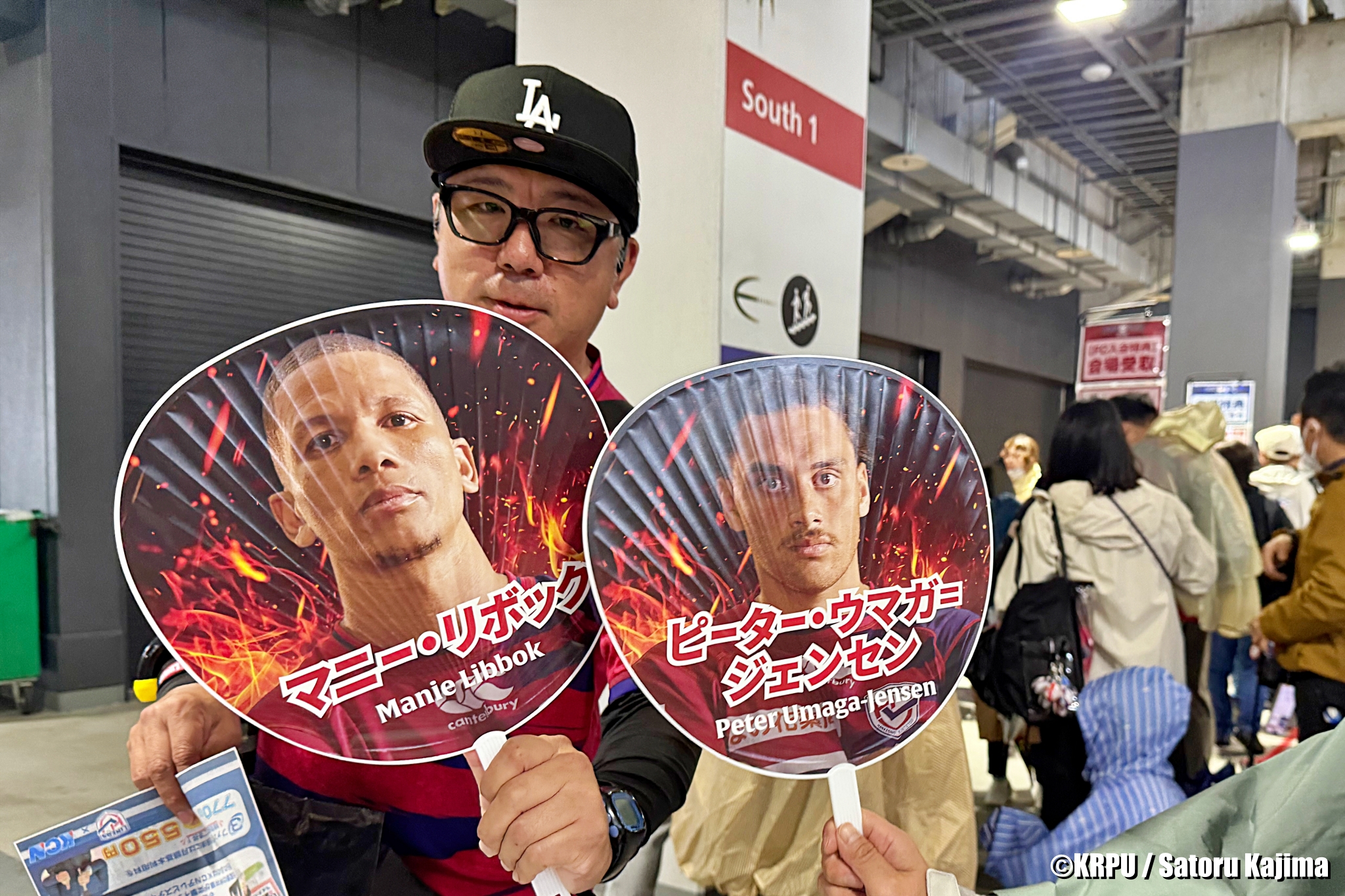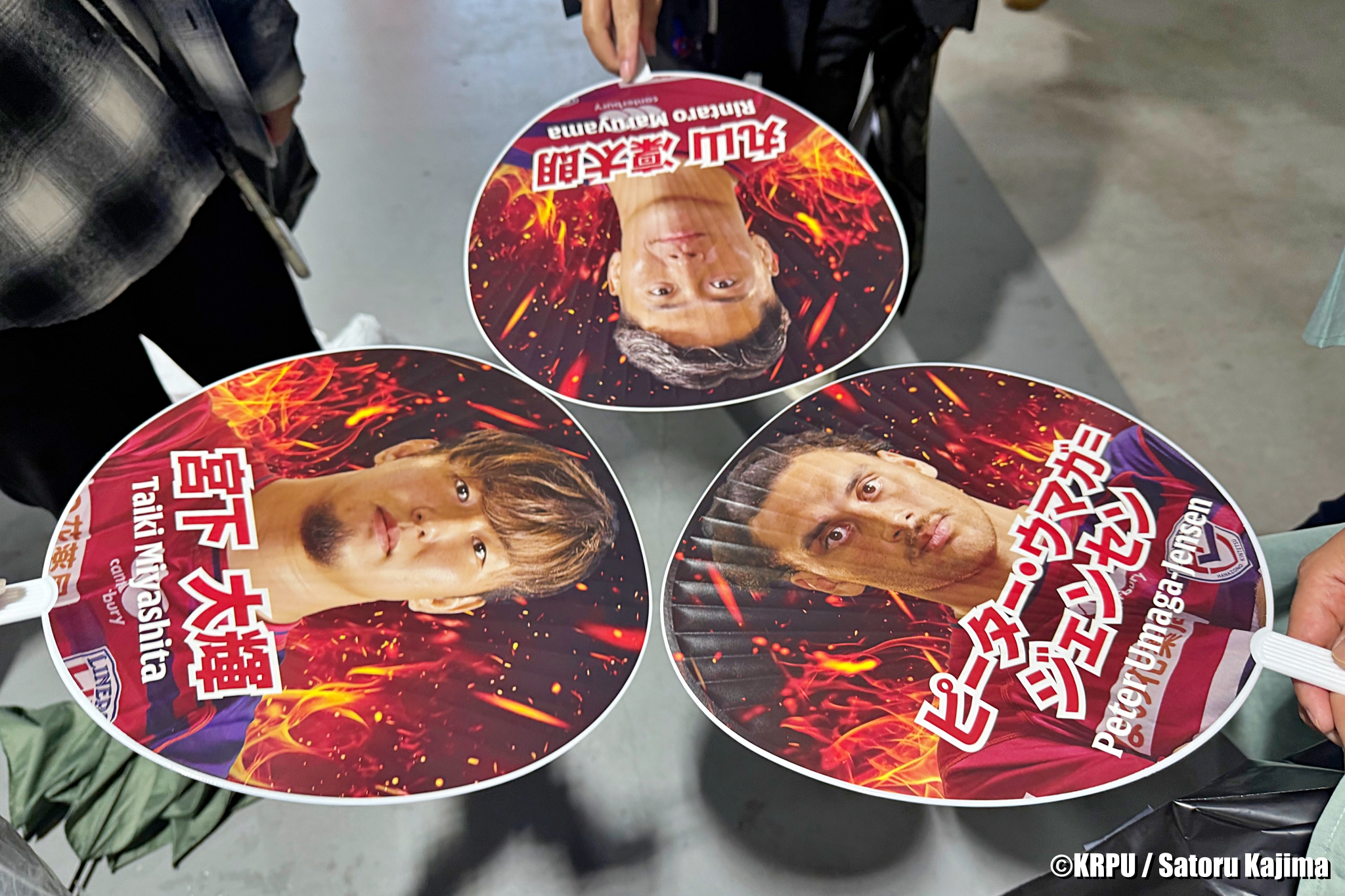 【来場特典】・黒い袋に入ったシークレット包装で、誰が当たるかワクワクして楽しかった。・推しのうちわは当らなかったが、ファン同士、会場でうちわの交換ができて楽しかった・試合終了後、うちわを掲げていたら選手が手を振ってくれた