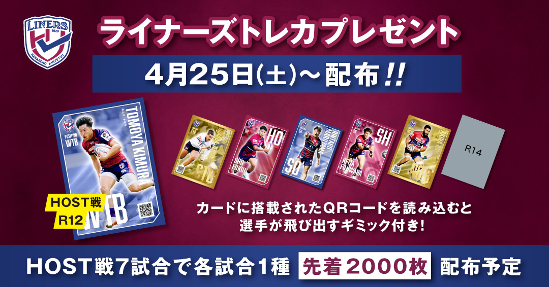 花園ラグビー場入場口にて、ライナーズトレカを先着2,000名様にプレゼント