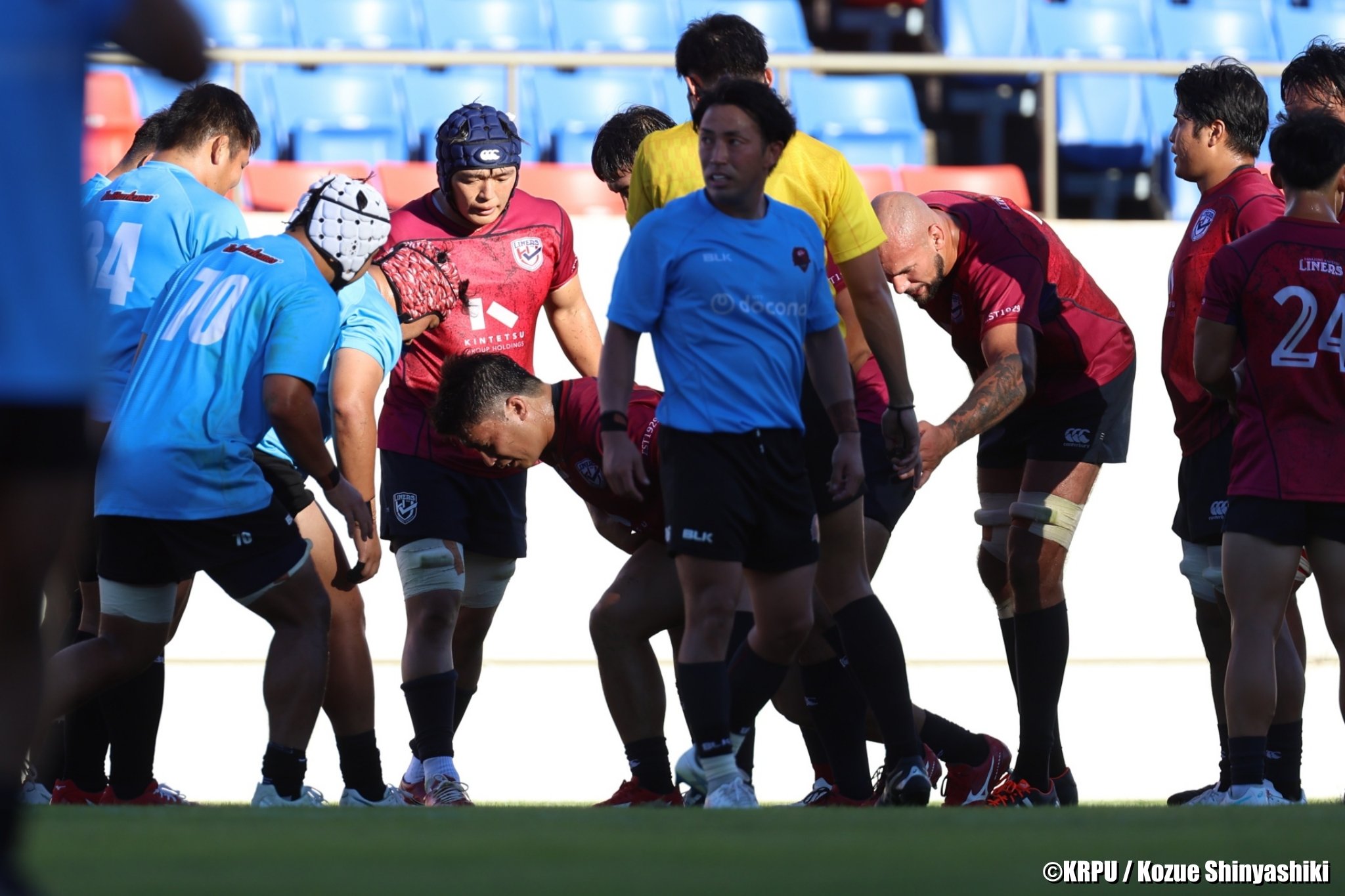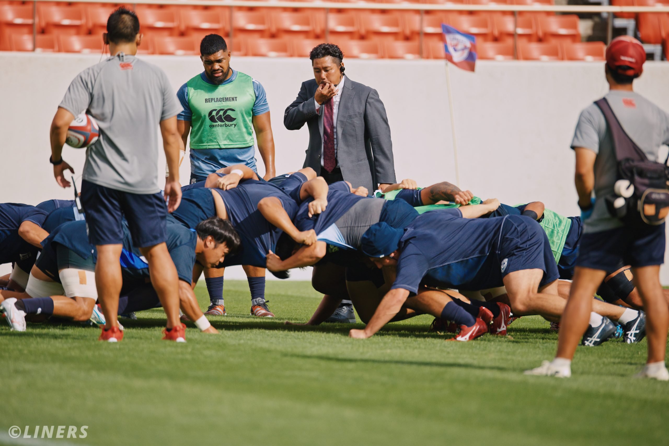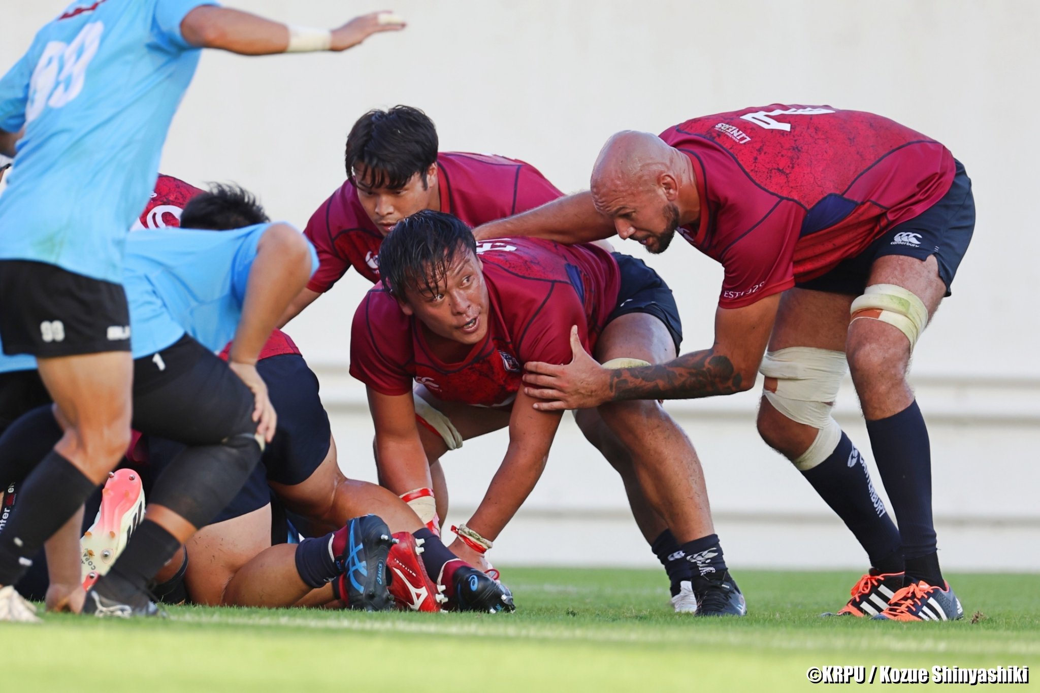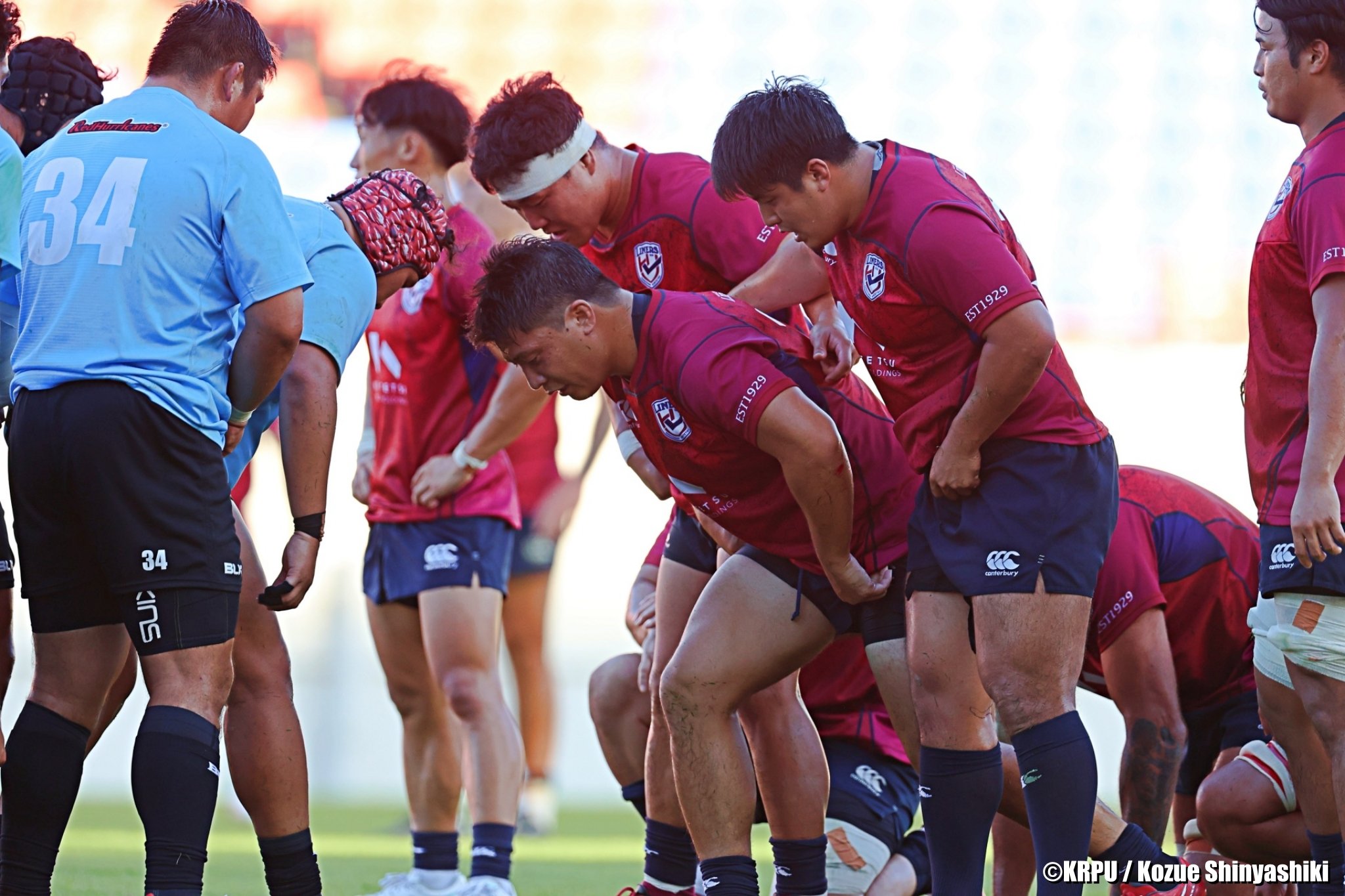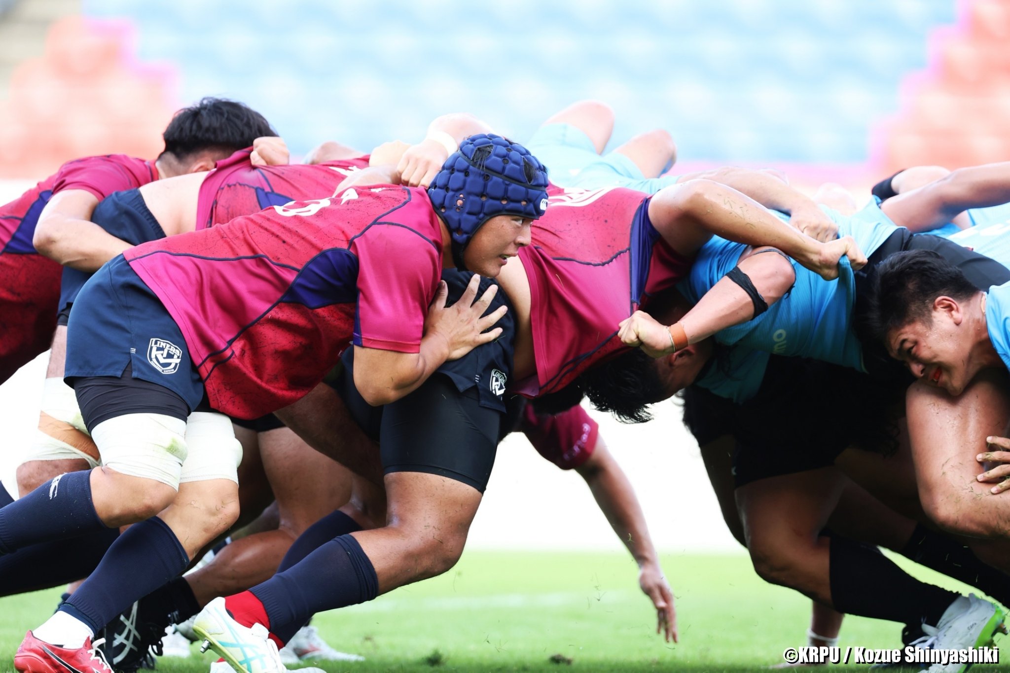 スクラムを組む選手